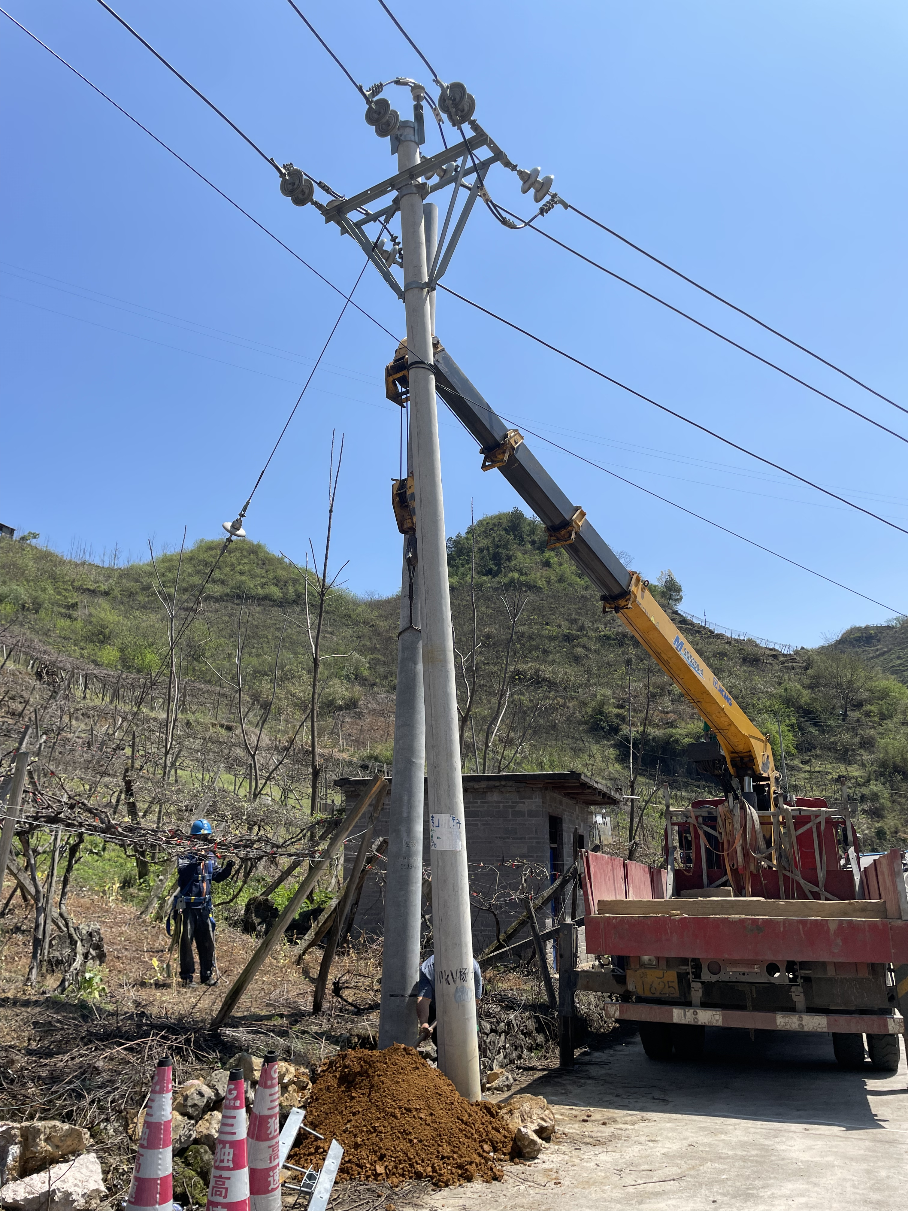 由于14号杆杆高10米位于乡道左侧路面边缘内,且杆顶受到不平衡两个方向拉力,若使用堆砌混凝土方式加固杆根,混凝土堆砌横截面将无法达标,并影响道路行车安全。通过现场仔细研究和讨论,维修人员采用重新更换14号杆的方式处置,并在旁边农地距路面边缘处重新开挖杆洞组立,能够有效解决隐患,并且可以避免该杆体受到行车安全影响。通过现场6个小时的施工,完成隐患杆体更换,成功消除安全隐患。