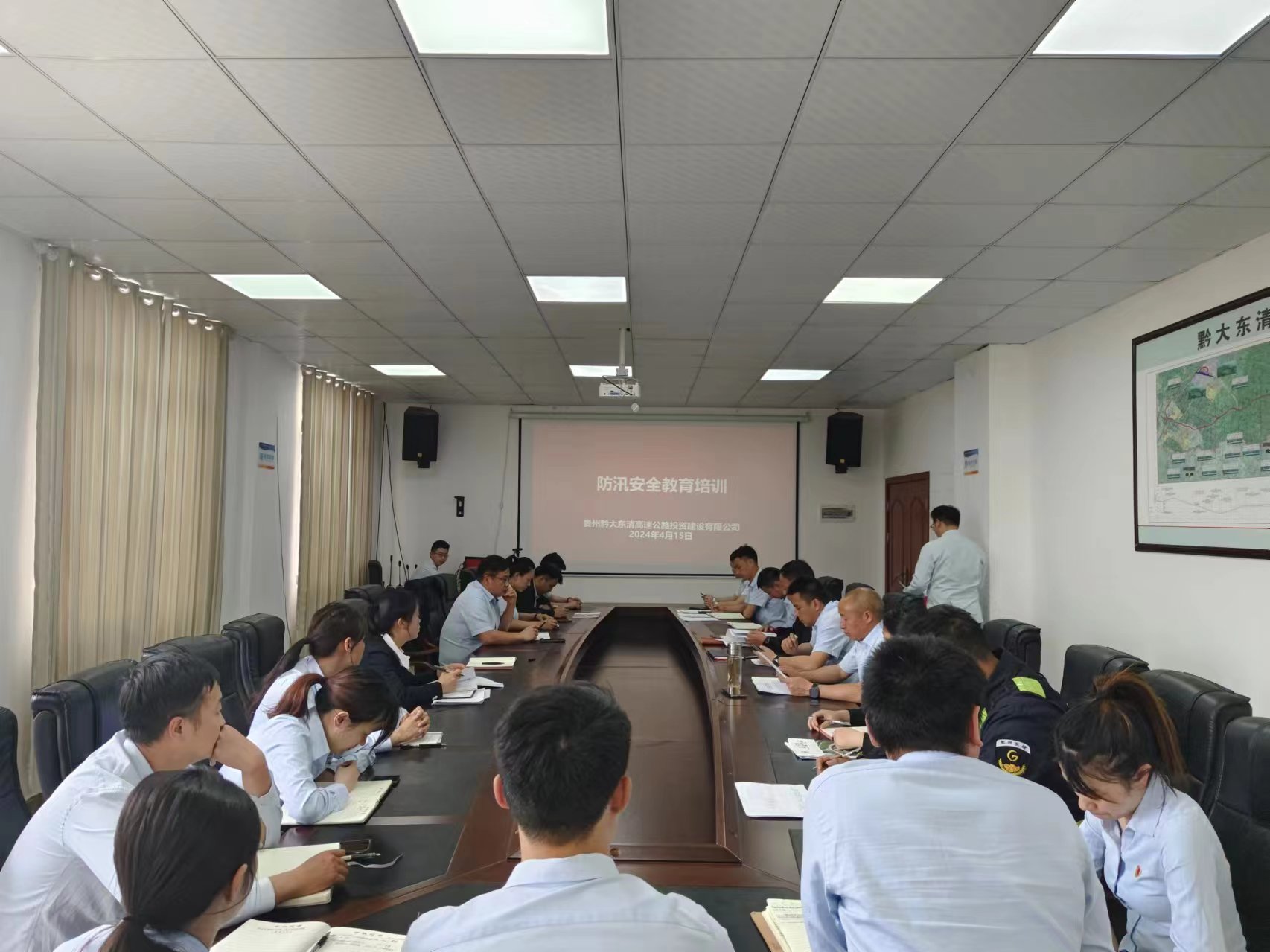 东清公司组织召开2024年汛期保通专项工作部署会议,全面动员部署汛期安全生产工作,对汛期各项应急措施进行了全面细致的安排。开展防汛安全教育培训,增强员工的安全意识和应急能力。联合“一路三方”开展汛期抢险应急演练,模拟突发暴雨导致的道路积水、山体滑坡等险情,通过演练增强各方协同作战能力,为汛期防治奠定了坚实基础。